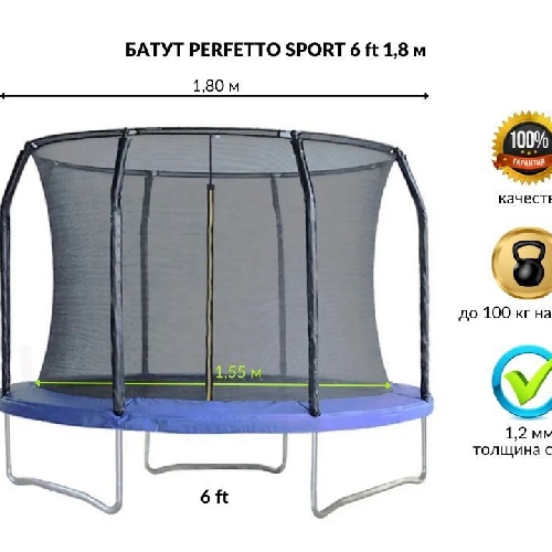 Батут с защитной сеткой "Perfetto sport 6"- это идеальный спортивный аттракцион для ваших детей. Наш батут оборудован защитной сеткой и лазом застегивающимся на молнию. Внутри батут имеет мягкий мат, который надежно защищает ребенка от любых падений, а вертикальные стойки защищены мягкими чехлами