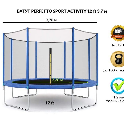Батут с защитной сеткой "PERFETTO SPORT ACTIVITY 12" диаметр 3,7 м синий