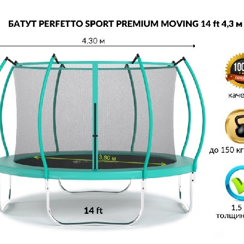 Батут с защитной сеткой "Perfetto sport MOVING 14"- это идеальный спортивный атракцион для ваших детей. Наш батут оборудован защитной сеткой и лазом застегивающимся на молнию.Внутри батут имеет мягкий мат, который надежно защищает ребенка от любых падений, а вертикальные стойки защищены мягкими чехлами