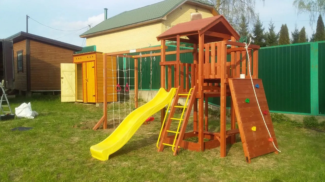 Детская площадка Савушка КУБ-2 (Махагон) с гамаком для йоги