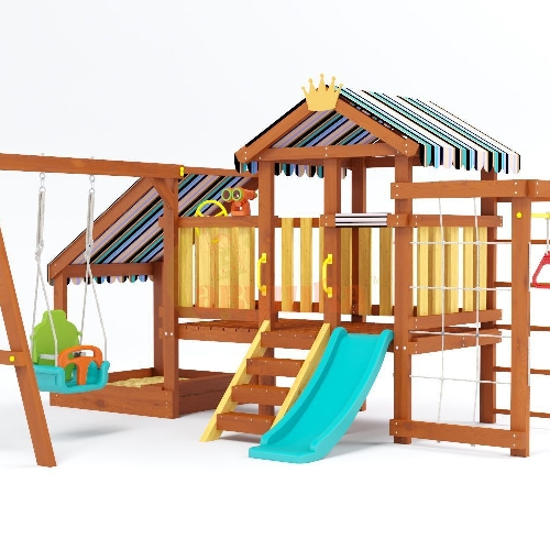 На детской площадке «Савушка Baby-12» Play (Priority) каждый ребенок найдет себе занятие по душе и интересам. Мы спроектировали небольшой комплекс для малышей, который можно разместить на любом дачном участке. Модель включает спортивные, развлекательные, развивающие элементы. Основной материал – массив (используем сосну). Балки и опоры с сечением 45 х 90 мм выдерживают большие нагрузки, не деформируясь. Конструкция уличного комплекса отвечает достаточно жестким требованиям ГОСТ по параметрам безопасности, экологичности, долговечности.