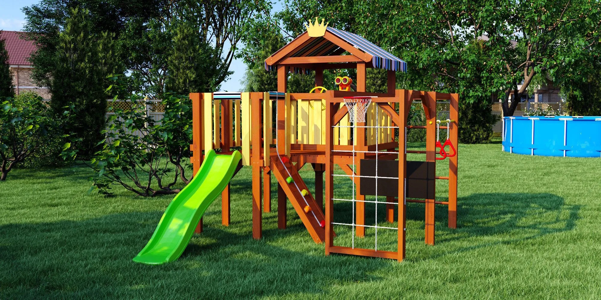 Современная деревянная игровая площадка для дачи не только разнообразит досуг ребенка, но и приносит множество положительных результатов: