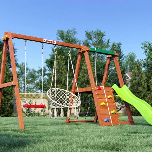Савушка TooSun-1 с плетеным креслом — это игровой комплекс, который объединяет уют и активность, комфорт и развитие в одном пространстве. Плетеное кресло-гамак создаёт настоящий уголок для отдыха и уединения, где ребёнок может расслабиться после весёлых игр.