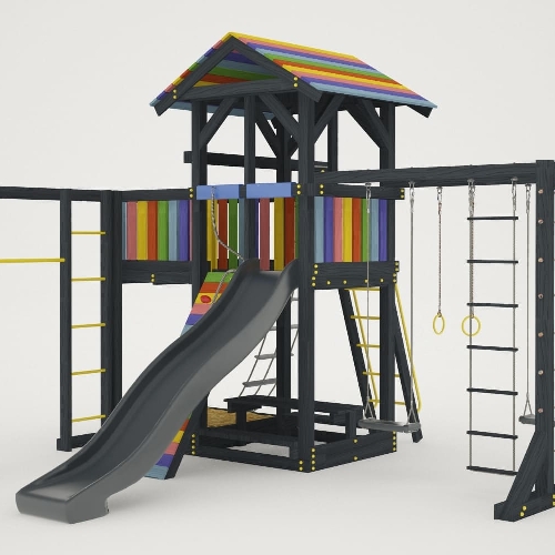 Детская площадка Савушка 3 (BLACK EDITION) — это стильный и многофункциональный игровой комплекс, который сочетает в себе спортивные и развлекательные элементы для активного отдыха детей. Современный дизайн в черном цвете делает площадку эффектной и гармонично вписывается в любой ландшафт.