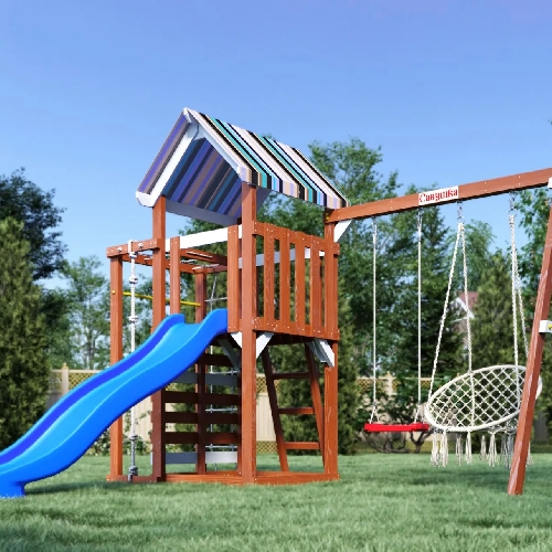 Детская игровая площадка Савушка TooSun-8 — универсальное решение для активного отдыха и спокойных игр на свежем воздухе. Площадка подходит для дачи, частного дома или загородного участка. Она сочетает в себе спортивные элементы, уютную зону отдыха и яркий современный дизайн.