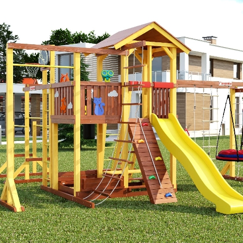 Детская площадка «Савушка Семейная COMFORT PLUS» — это идеальный выбор для семей, которые хотят создать безопасное и увлекательное пространство для детей на своем участке. Площадка создана с акцентом на надежность, качество и долговечность. Она оснащена современными и безопасными элементами, которые подходят для активных игр всех возрастов.