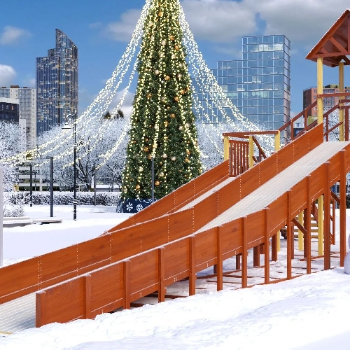 Зимняя горка Савушка Зима 9/2 — это настоящий центр зимних игр. Большая конструкция с двумя скатами, двумя лестницами и просторной площадкой наверху позволяет детям играть вместе, не мешая друг другу.