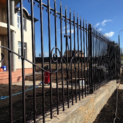 Представляем вашему вниманию надежное и эстетичное ограждение, выполненное из прочного металла. Этот сварной секционный забор, украшенный изящными коваными элементами, станет стильным дополнением к любому ландшафту.