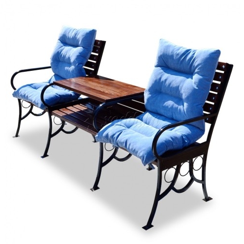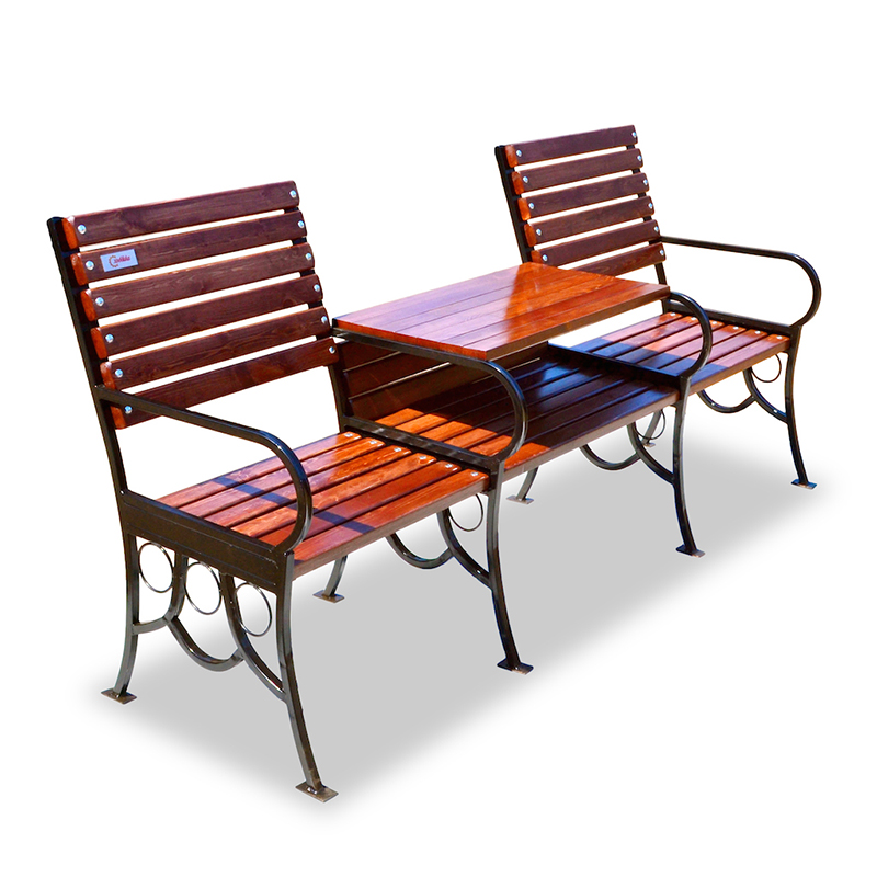 Сиденье и спинка: Брус из хвойных пород древесины. Покрытие - атмосферостойкая лессирующая акриловая пропитка. Возможно покрытие лаком или маслом за дополнительную плату. Стандартные цвета: Палисандр, Махагон, Тик.