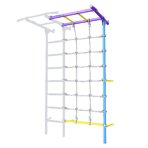 В комплект входит стойка с рукоходом и канатным лазом, а также все необходимые крепежи к стене и к шведской стенке. В целях обеспечения безопасности во время занятий на комплексе, рекомендуется дополнить комплект матом.