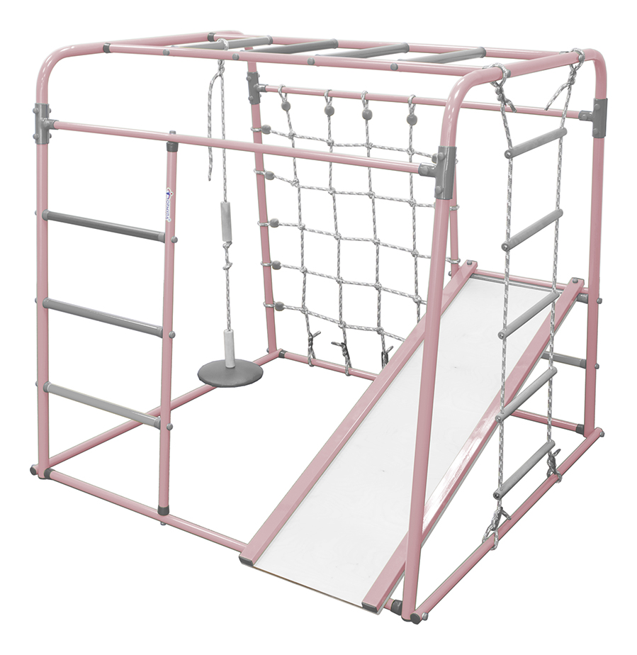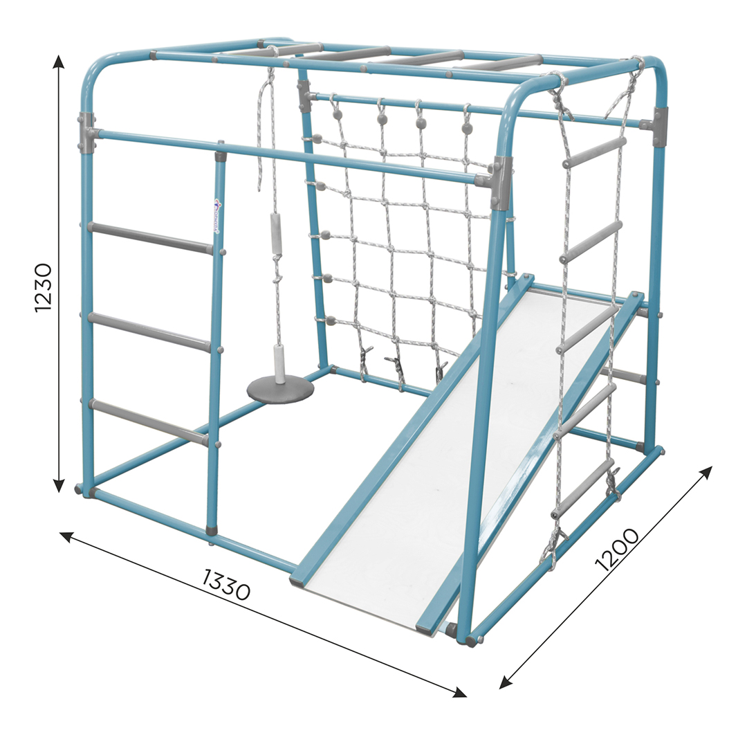 Наш собственный продукт, Baby 1, создан для того, чтобы с ранних лет развивать у ребенка координацию и ловкость. Его простая и легкая в сборке конструкция не займет много места (всего 1,6 м²) и не требует крепления к стене, что делает его мобильным и удобным для перемещения. Металлическая основа выдерживает до 80 кг, а навесное оборудование – столько же.