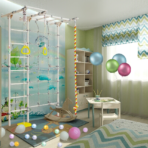 Комплектация: турник, канат, кольца гимнастические, тарзанка, сетка для лазания