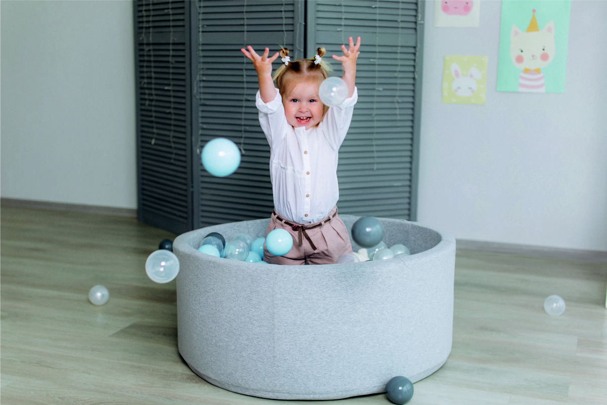 Сухой бассейн — прекрасная забава для юных непосед. Он может использоваться как отведенная игровая зона, но чаще он наполняется шариками для подвижных игр и для отдыха. Сухой бассейн мягкий и безопасный, быстро и удобно чистится.