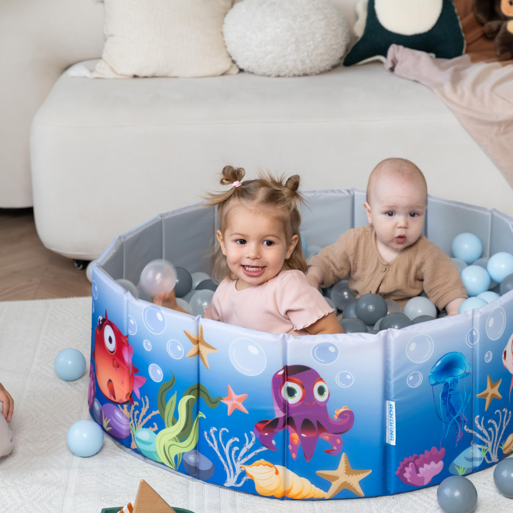 Складной сухой бассейн ROMANA серии «Мир приключений» - не только развивающая безопасная игровая зона, но и увлекательная игрушка для детей с раннего возраста.