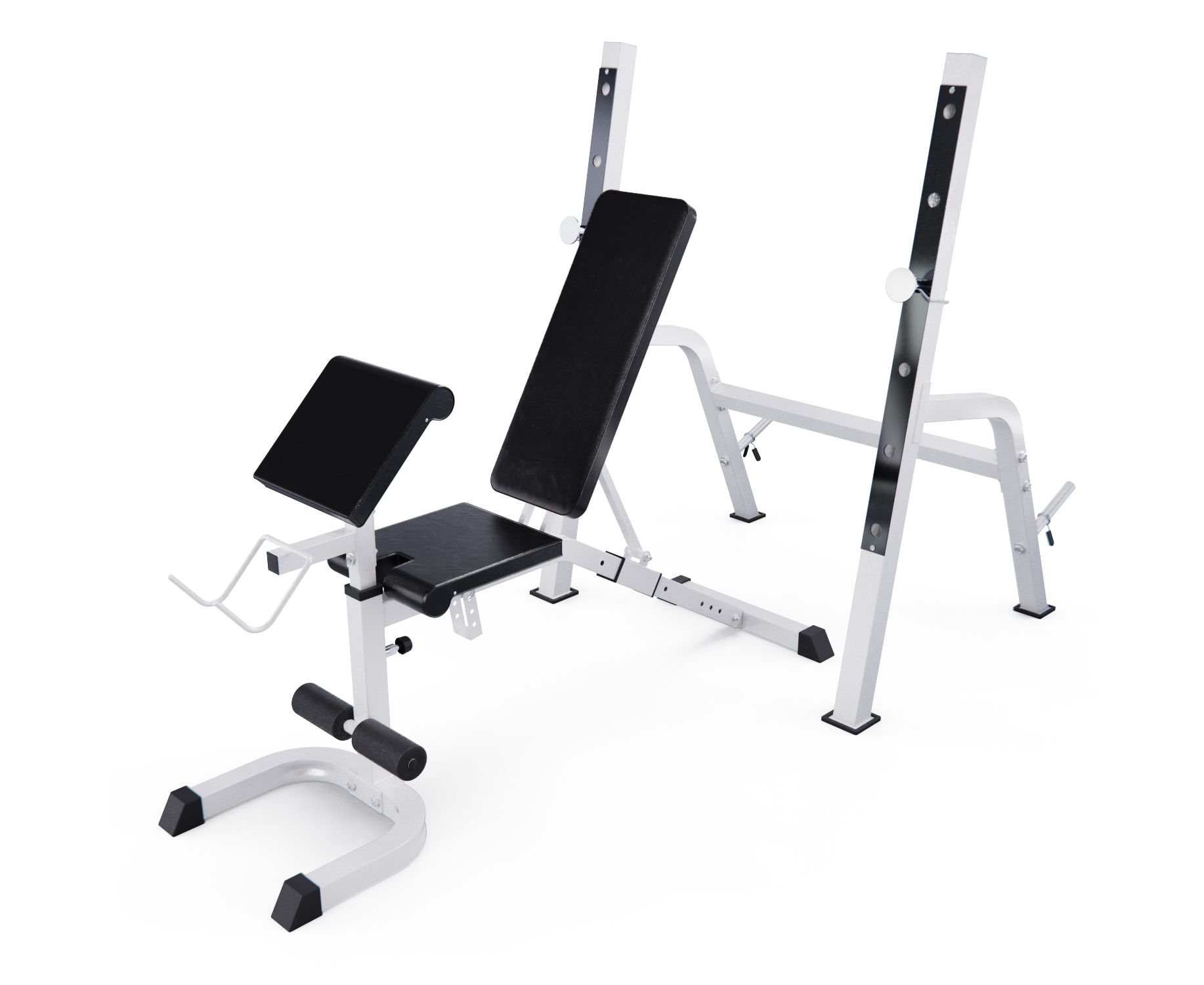 Скамья со стойками под штангу DFC GORILLA белая, с партой для бицепса