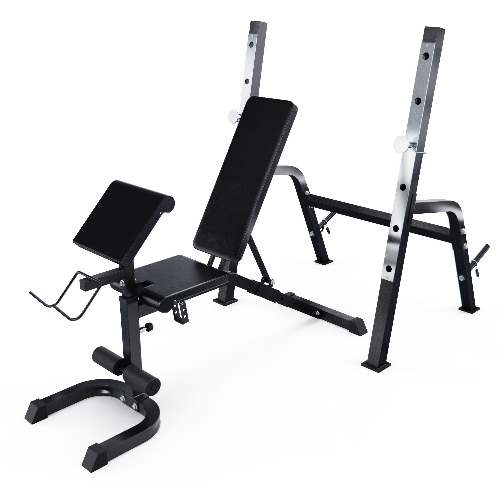 Максимально допустимая нагрузка на спортивную скамью составляет 250 кг. Нагрузка на парту может достигать 100 кг, а нагрузка на держатели под штангу составляет 100 кг.