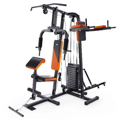 Силовой комплекс DFC из серии HomeGym D7002-60 предназначен для прокачки всех групп мышц: рук и верхнего плечевого пояса, спины, грудных мышц, пресса, ног. Позволяет выполнять силовые упражнения с разным функционалом для наилучшей эффективности тренировки. Сиденье и спинка с плотной обивкой чёрного цвета с оранжевыми вставками зафиксированны для комфортного выполнения упражнений. Парта для бицепса из той же ткани регулируется по высоте на 3 уровня. Степпер с гидроцилиндрами для дополнительной нагрузки. Максимальный вес пользователя — 120 килограмм.