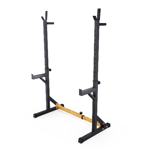 Устойчивое основание стойки для приседаний из высокопрочной профильной трубы 50 х 50 х 1,5 мм выдерживает динамическую нагрузку до 150 кг (динамическая нагрузка – нагрузка на элементы конструкции в движении). Подходит для выполнения полного спектра упражнений со штангой: от приседаний и становой тяги до жима лежа.