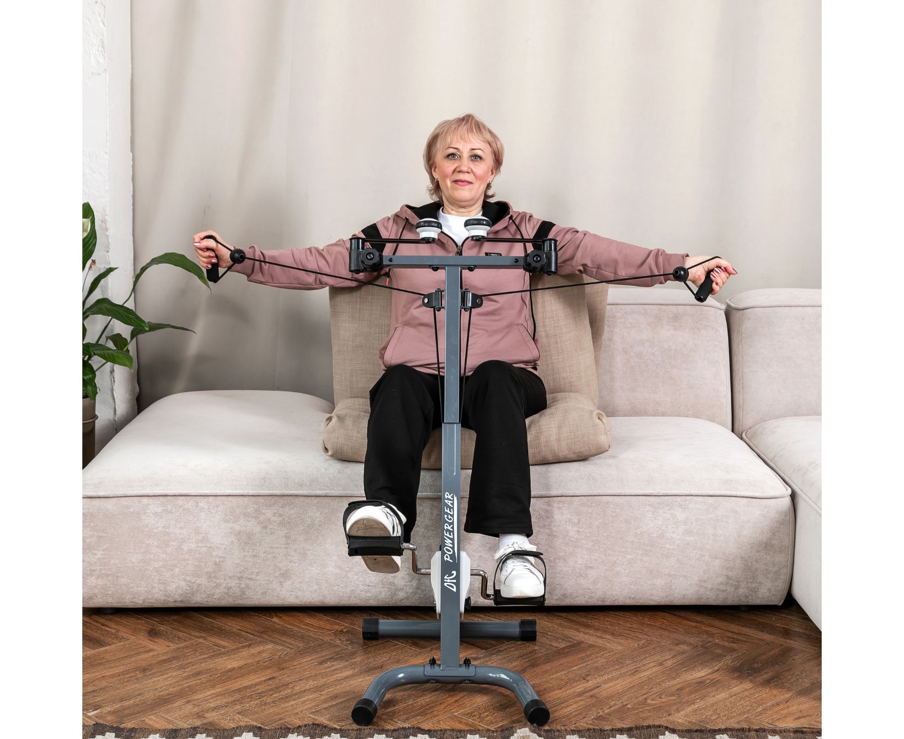 Особое внимание уделено удобству хранения и транспортировки: конструкция велотренажера складная. Педали оснащены регулируемыми ремешками на липучках, надежно фиксирующими стопу. Для защиты вашего пола от царапин и предотвращения скольжения тренажера во время интенсивных тренировок, на ножках предусмотрены специальные резиновые накладки. Кроме того, эти накладки выполняют функцию компенсаторов неровностей пола, обеспечивая устойчивость даже на неидеальной поверхности.