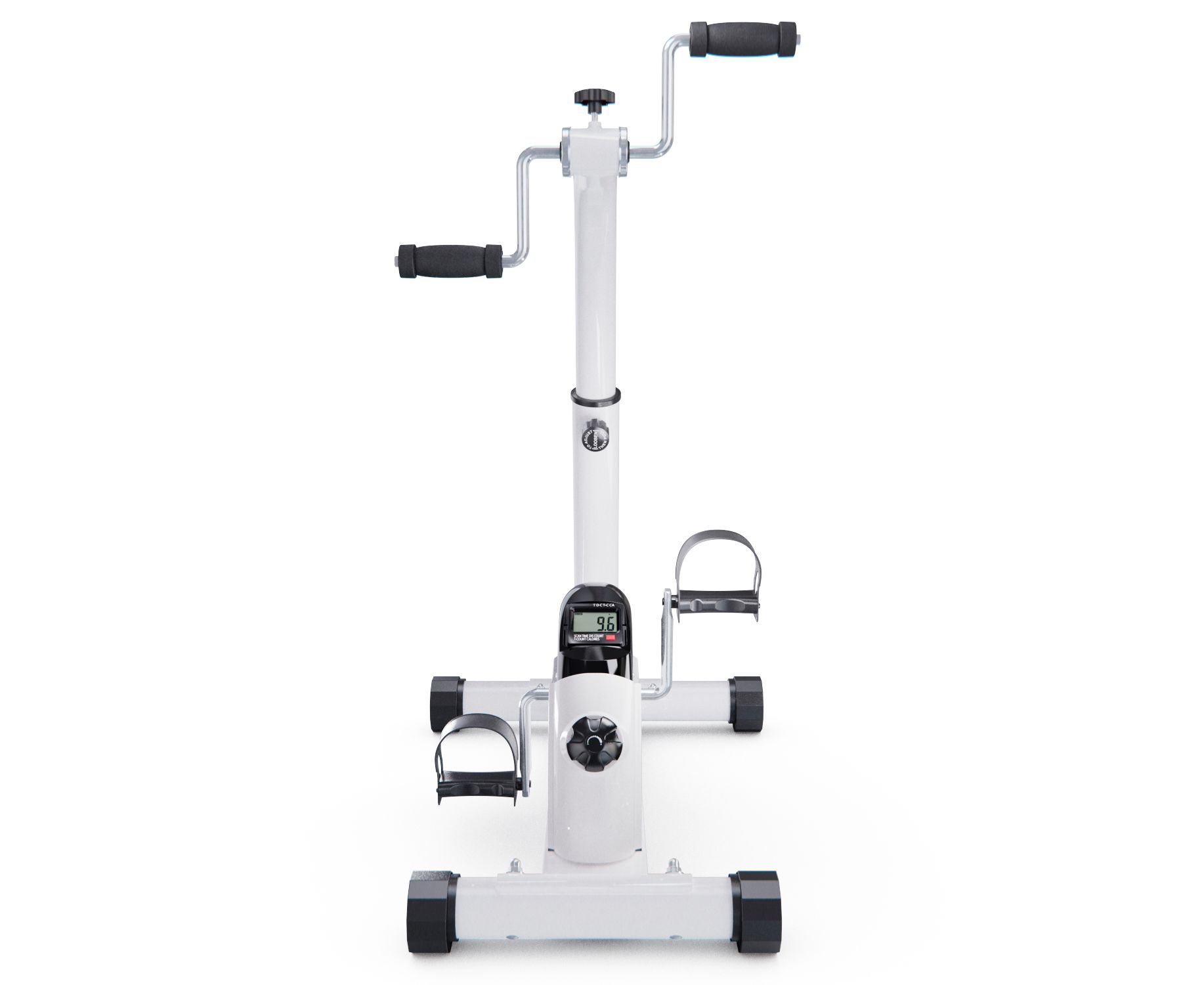 Особенностью модели являются двойные педали, позволяющие тренировать как ноги, так и руки, тем самым расширяя спектр задействованных мышц и делая тренировки более разнообразными.